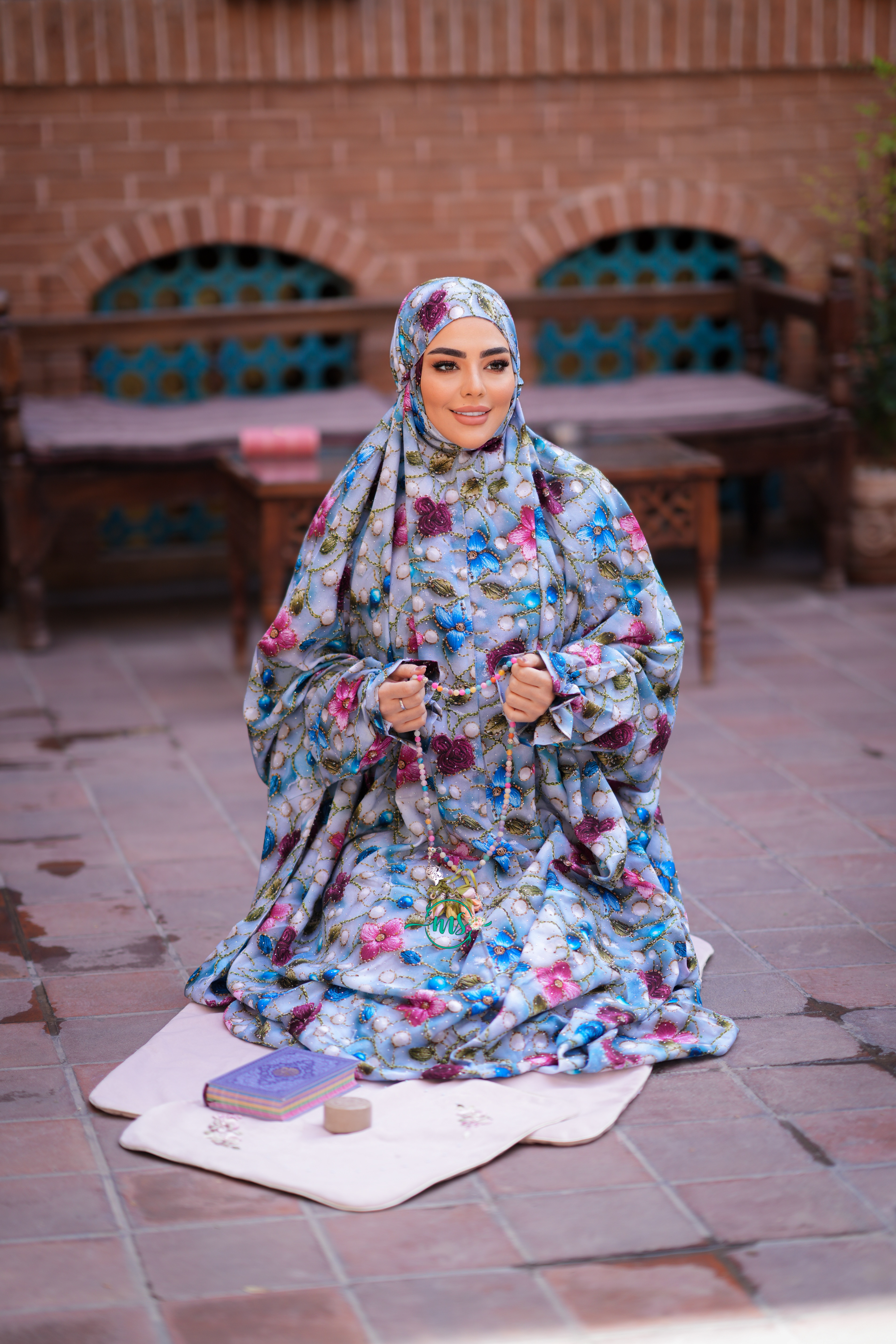 ناموجودچادر نماز آستین دار کدری نگین دار 123