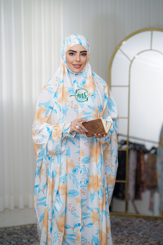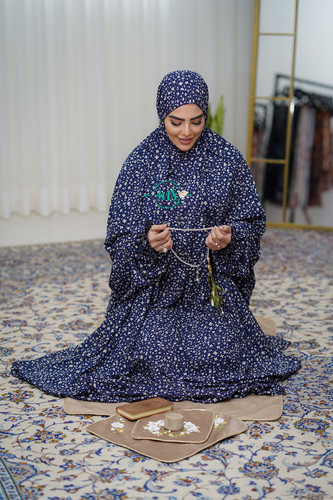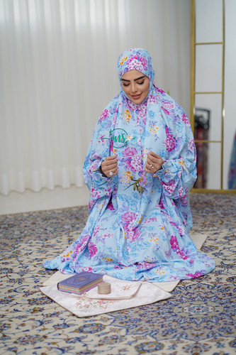 چادر نماز آستین دار کدری 101 زمینه آبی