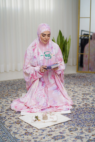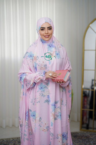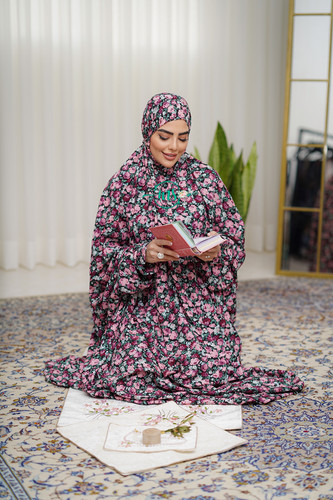 چادر نماز آستین دار کدری 99 زمینه مشکی صورتی