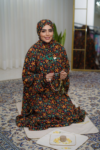 چادر نماز کیسه ای کدری 74 زمینه مشکی