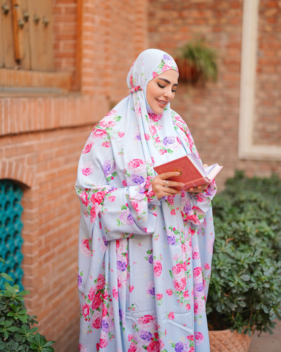 چادر نماز آستین دار کدری61 گل ریز آبی