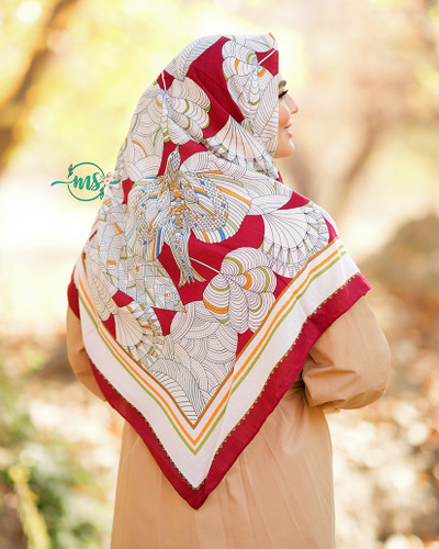ناموجود روسری ابریشم ژاکارد طرح هرمس هندسی کرم آلبالویی