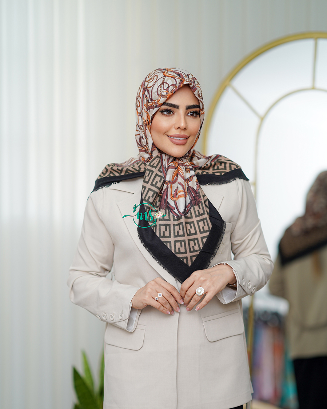 ناموجود روسری سیا اسکارف کرم قهوه ای
