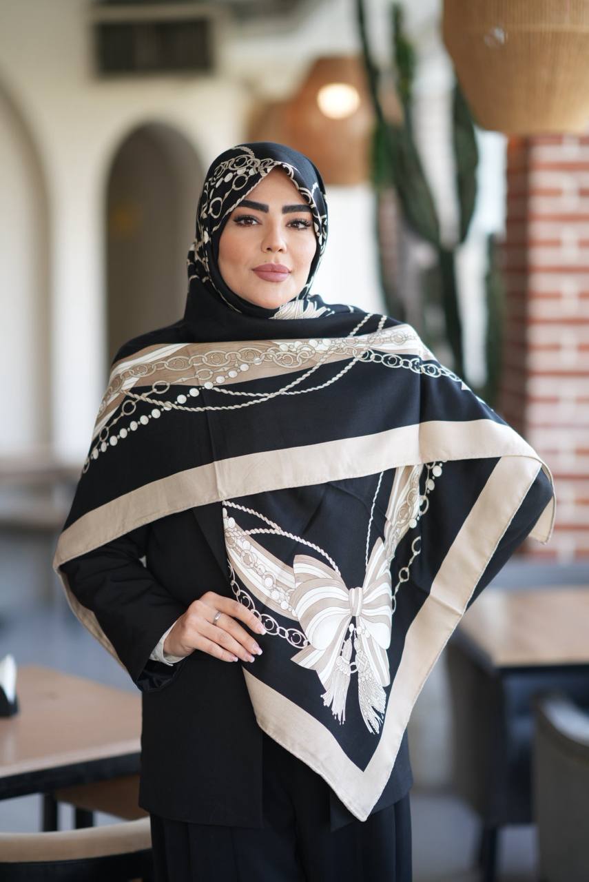 ناموجود روسری طرح دیور مربعی مشکی کرم