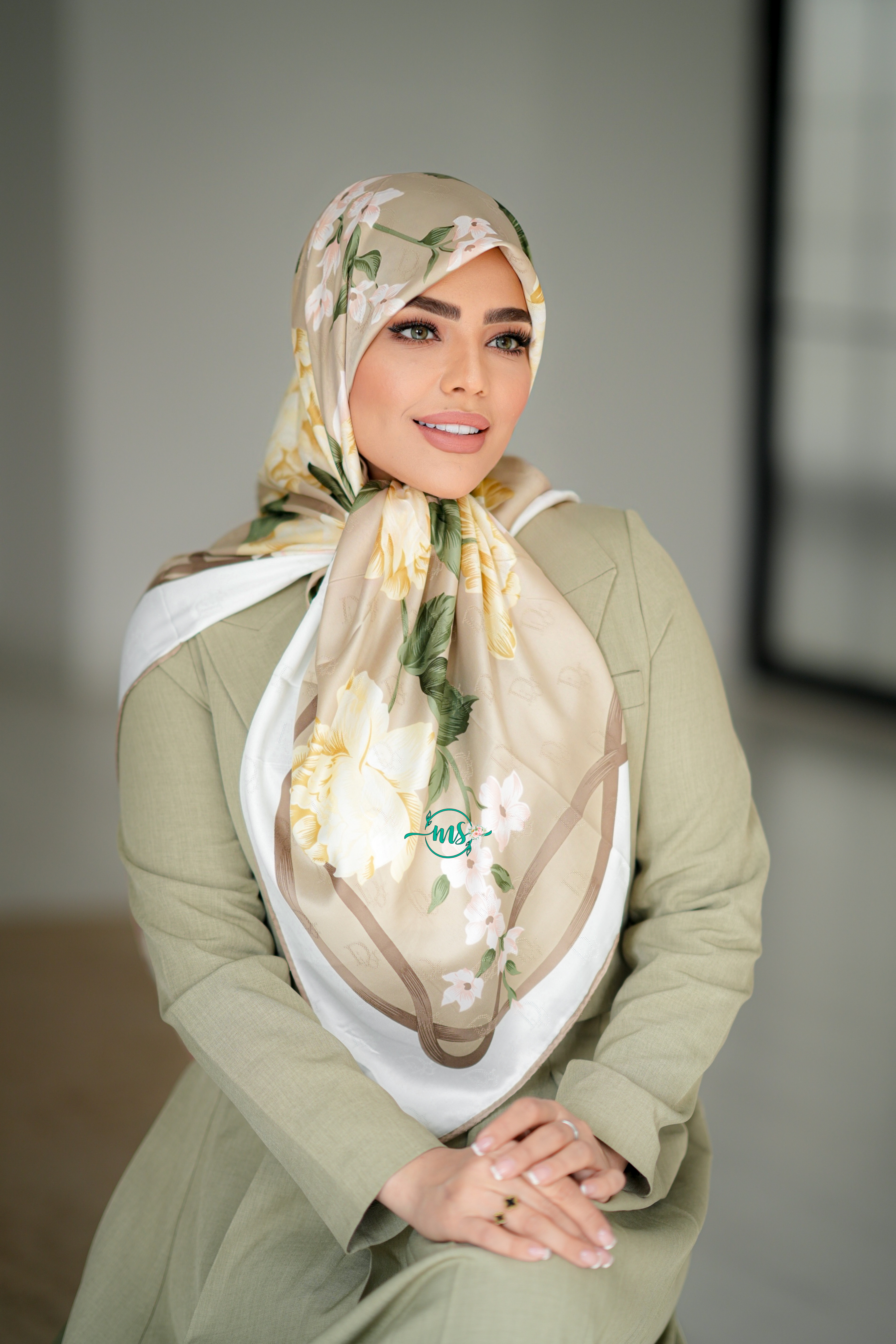 روسری پلیسه گل سنگشور خاکی